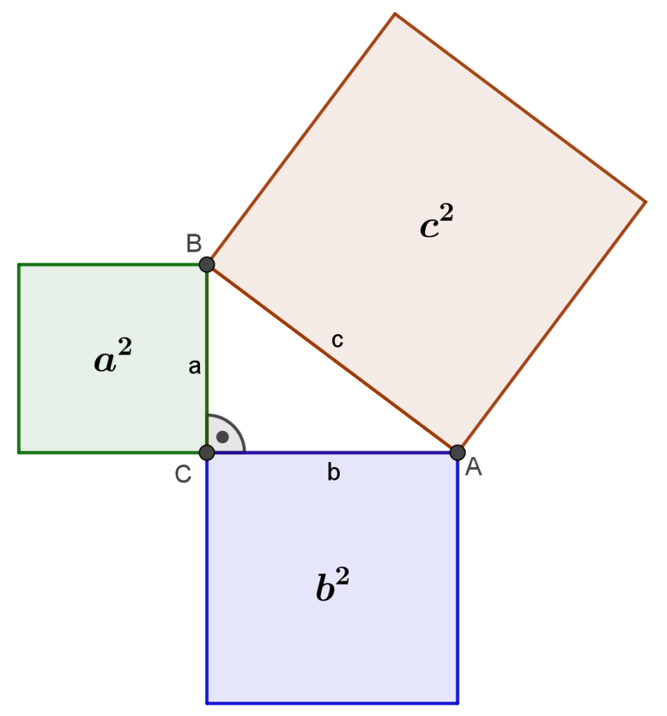 A_a + A_b = \frac{a^2\cdot\sqrt{3}}{4} + \frac{b^2\cdot\sqrt{3}}{4} = \frac{c^2\cdot\sqrt{3}}{4} = A_c \newlineDurch Umformen der Gleichung erhält man:
